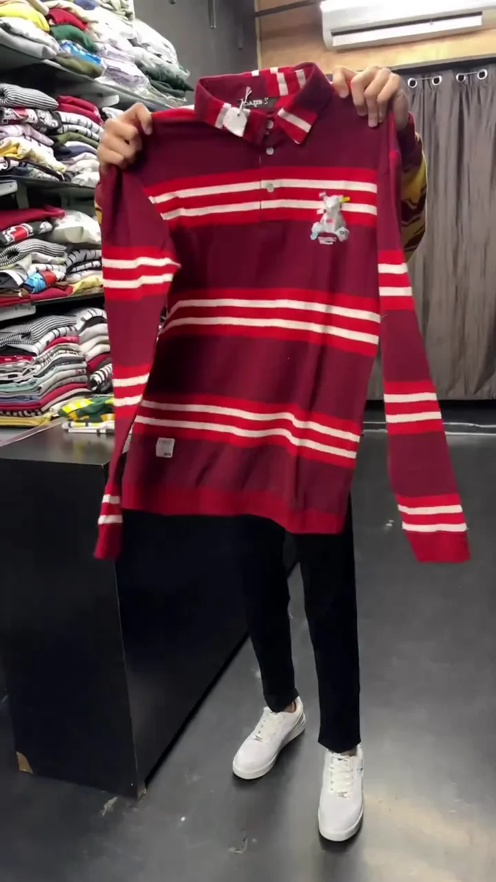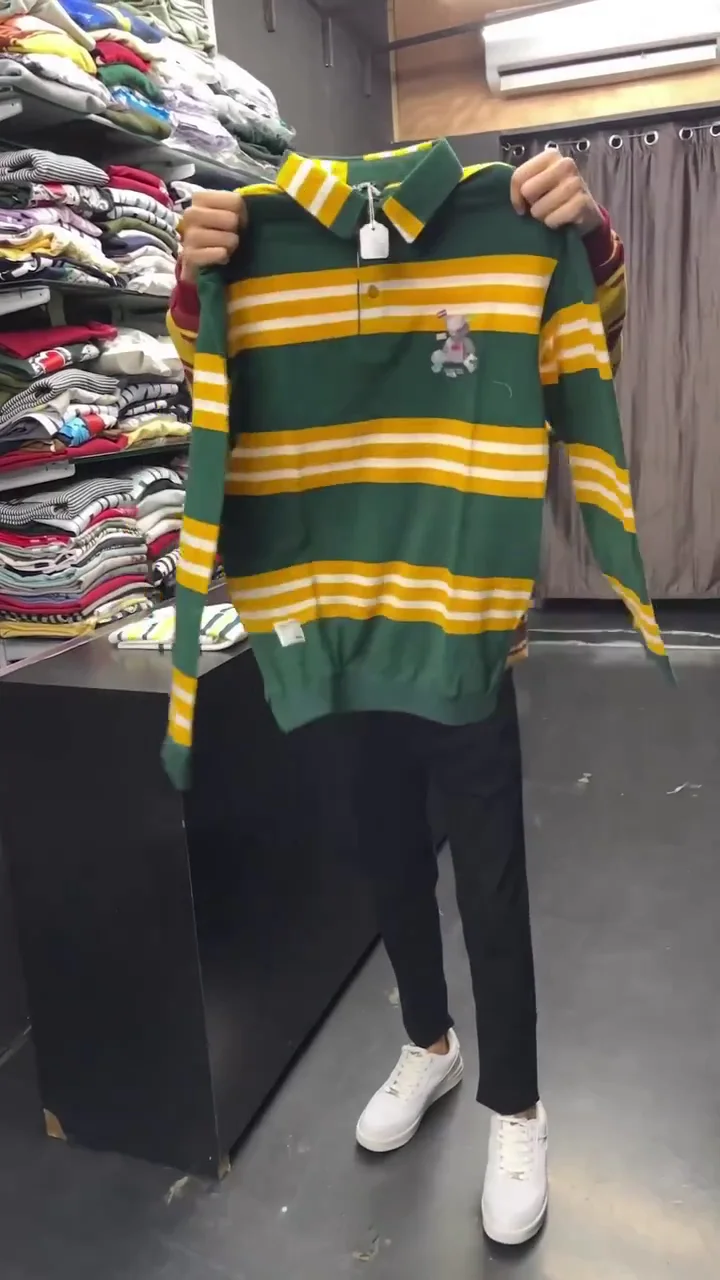 Auto Stripes Yellow Red Full Sleeve Polo T-Shirt