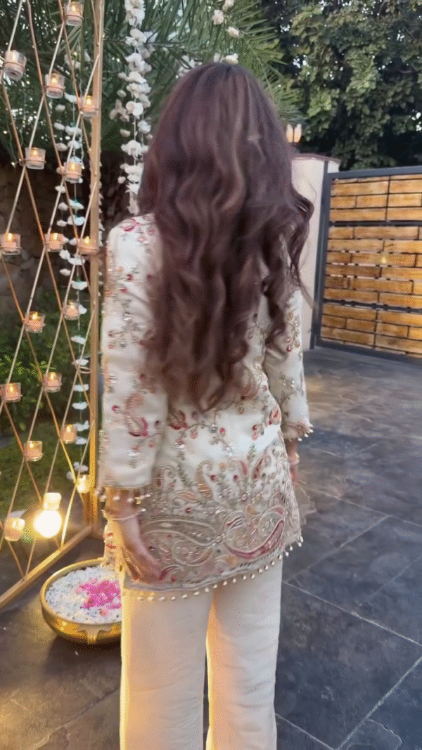 The kurti has a stylish keyhole neckline and pairs beautifully with straight palazzo pants. It gives a classy, minimal yet festive vibe.